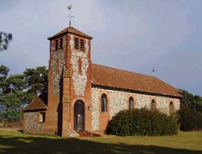 The architecturally distinctive church of St George in the hamlet of Six Mile Bottom was built in 1933. It was commissioned and largely paid for by the aristocratic Hall family, one-time owners of the Six Mile Bottom estate, designed by the prestigious and distinguished 20th century architects, Seely and Paget, built by the Cambridge builders, Rattee & Kett, and annexed to the parish of Little Wilbraham. It is one of the very few 1930's churches in Cambridgeshire.